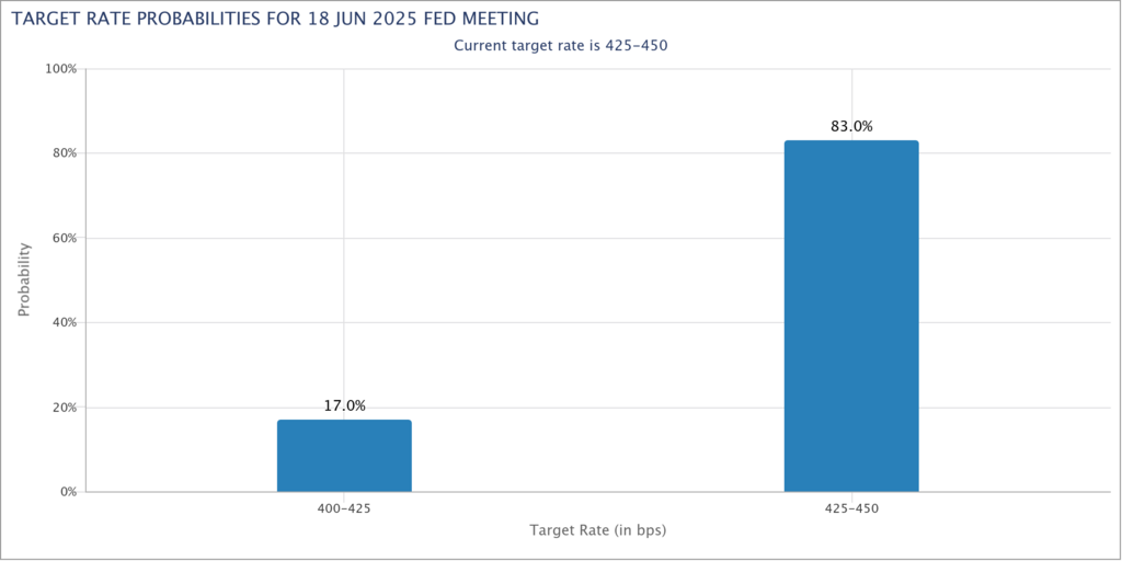 Zumindest gilt dies für den Aktienmarkt. Ansonsten wussten die Anleger sehr klar, was das bedeutet. Denn sie reduzierten die Wahrscheinlichkeit einer Zinssenkung im Juni von 30 % am Vortag auf nur noch aktuell 17 %.
