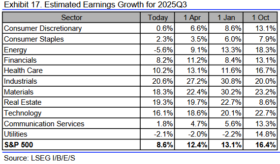 Vor diesem Hintergrund kann man allerdings natürlich auch erwarten, dass die Unternehmen des S&P 500 die sinkenden Gewinnerwartungen der Analysten für die weiteren 3 Quartale und das Gesamtjahr 2025 ebenfalls übertreffen werden, weshalb die Abwärtsrevisionen nicht so schlimm sind.