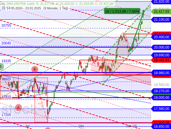 Der DAX kann derzeit täglich ein neues Rekordhoch erreichen. An jedem der vergangenen 8 Handelstage ging es aufwärts. Seit Jahresbeginn liegt das Plus dadurch nun schon bei mehr als 7 %.