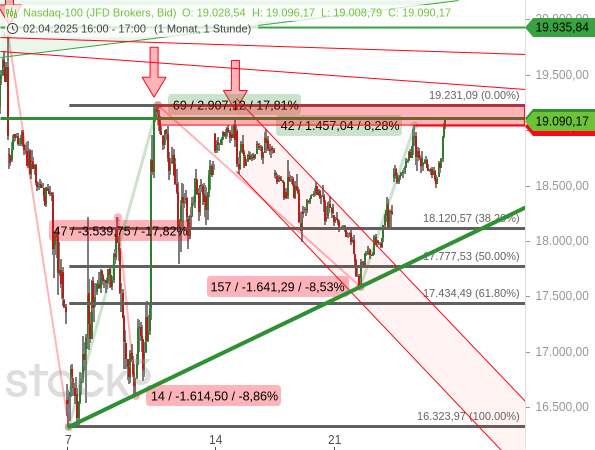Denn der Nasdaq 100 strebte gestern schon wieder nach oben und konnte das vorgestrige Tageshoch überwinden, nachdem sich die Kurse von diesem relativ deutlich nach unten entfernt hatten.