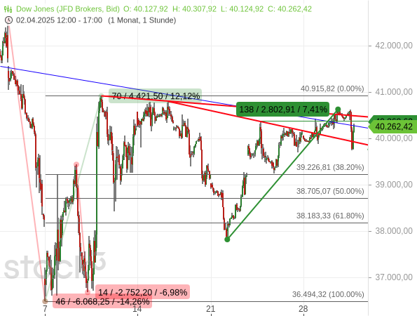 Eigentlich müsste spätestens nach den gestrigen BIP-Daten jedem Anleger und Trader bewusst sein, dass eine Rezession der US-Wirtschaft durch die Handelspolitik des US-Präsidenten eine reelle Gefahr ist. Und eigentlich müsste daher die Kauflaune merklich nachlassen. Sie hätte es in meinen Augen in dieser schon wieder extremen Art gar nicht geben dürfen. Dennoch: Auch gestern haben sich die Kurse von ihren Tiefs schon wieder mit einer recht starken Kurserholung entfernt. Der Markt zeigt damit weiterhin eine „Buy the dip“-Mentalität.